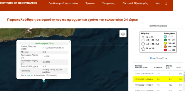 Σεισμός σημειώθηκε το πρωί της Παρασκευής στα ανοιχτά του Λασιθίου.