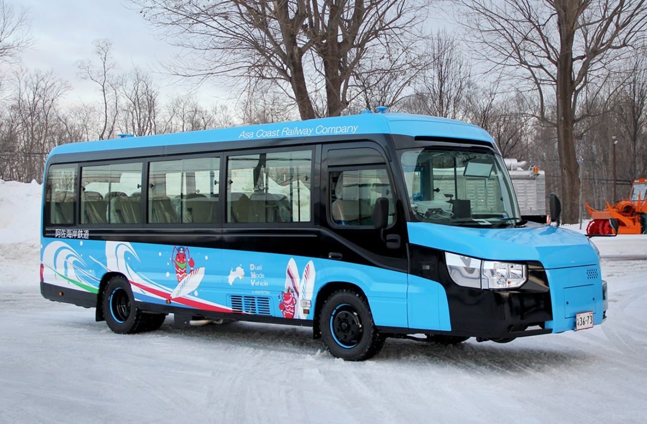 Στην Ιαπωνία, ένα μικρό όχημα μπορεί να ταξιδεύει σε κανονικούς δρόμους όπως ένα λεωφορείο και επίσης να κινείται σε σιδηροδρομικές γραμμές όπως ένα τρένο, καθιστώντας το το πρώτο όχημα διπλής λειτουργίας (DMV) στον κόσμο.
