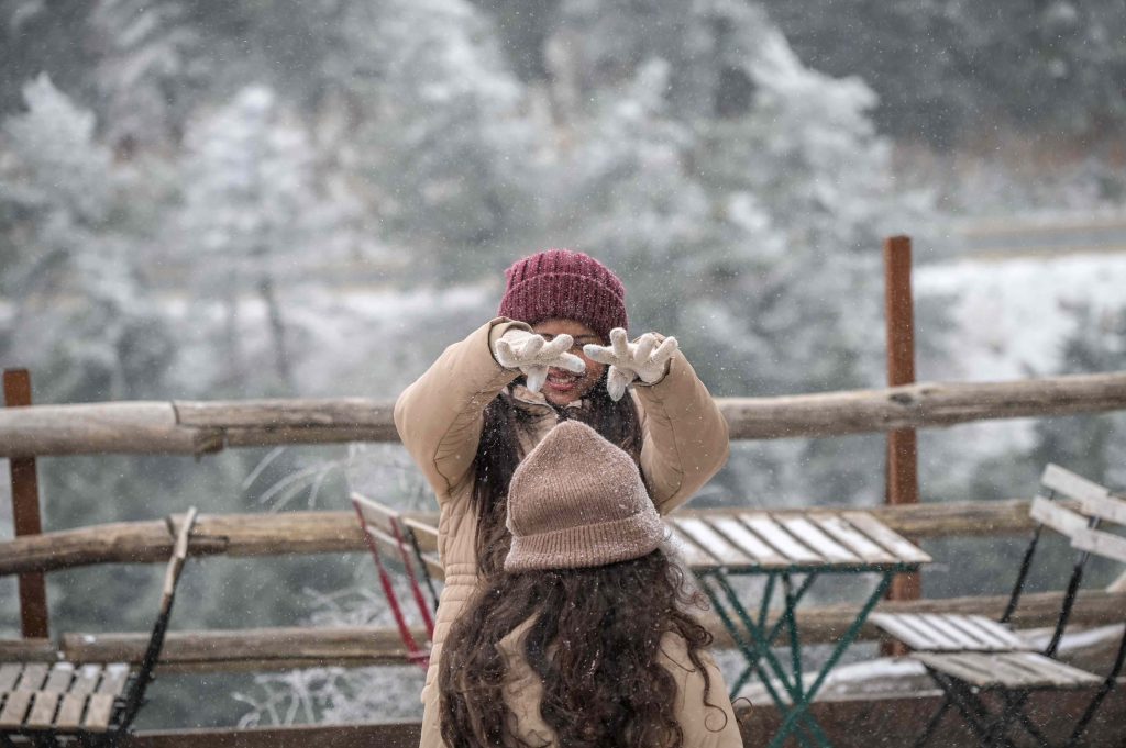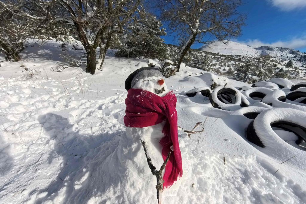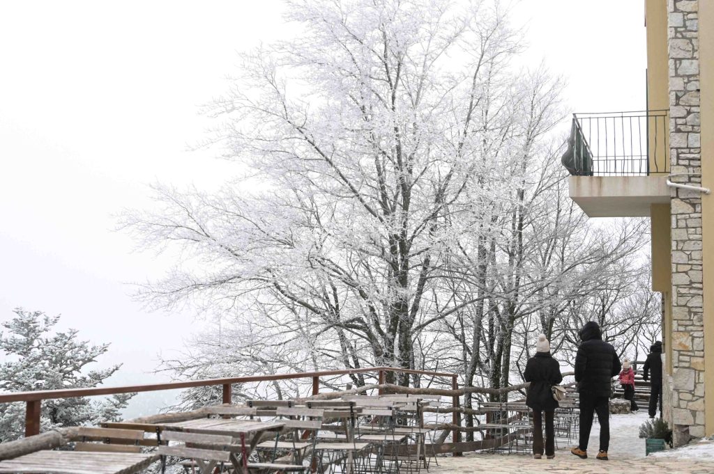 Από το πρωί, μικροί και μεγάλοι ανέβηκαν στο βουνό για να χαρούν το χιόνι, αψηφώντας τις πολύ χαμηλές θερμοκρασίες. Η θερμοκρασία έκανε “βουτιά” στους -6 βαθμούς Κελσίου σε υψόμετρο 1.000 μέτρων, ενώ η πυκνή ομίχλη και στρωμένο χιόνι δημιούργησαν ένα όμορφο σκηνικό που ωστόσο χρειαζόταν προσοχή.