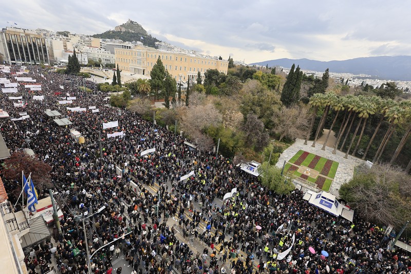 Ήδη έχουν αρχίσει οι πρώτες ομιλίες στην πλατεία Συντάγματος μπροστά από τη Βουλή με κεντρικό σύνθημα πως «δεν πρόκειται για δυστύχημα, αλλά για έγκλημα». Δριμύ είναι επίσης το “κατηγορώ” κατά των πολιτικών.