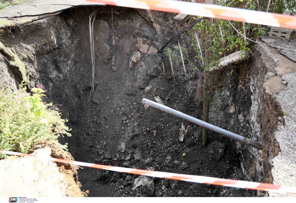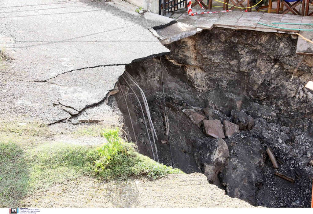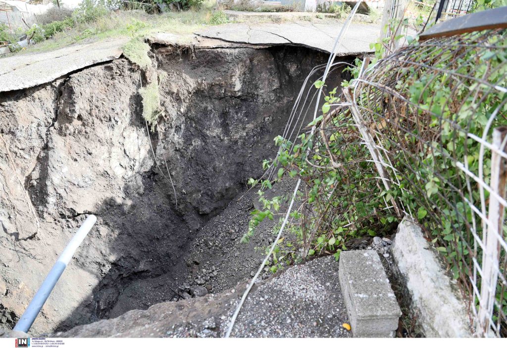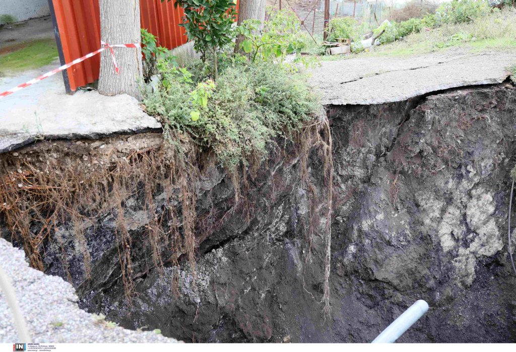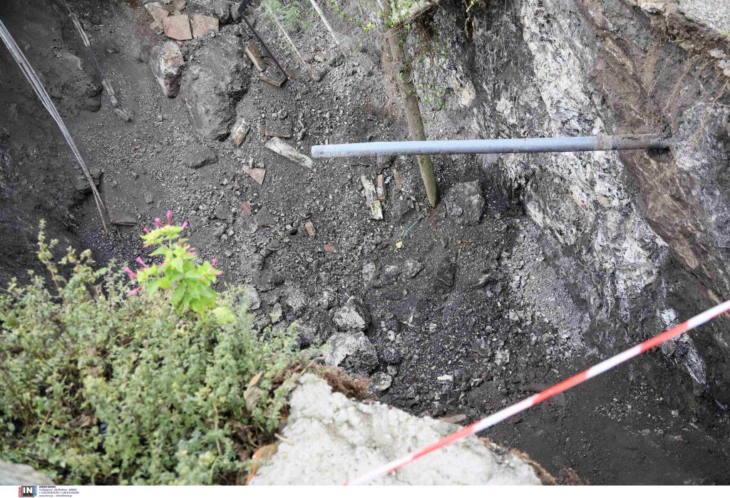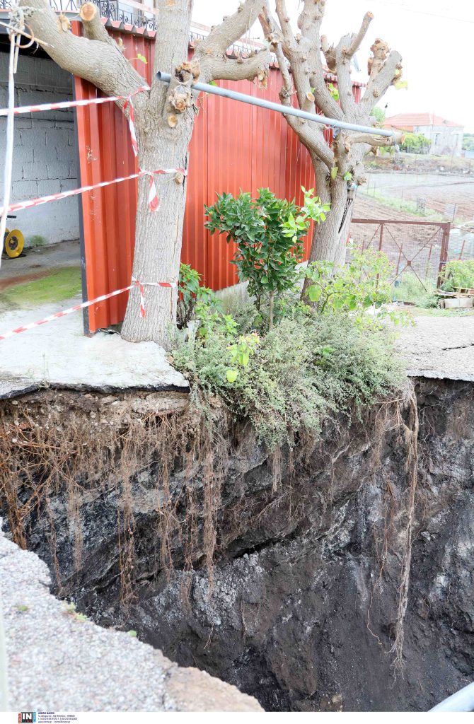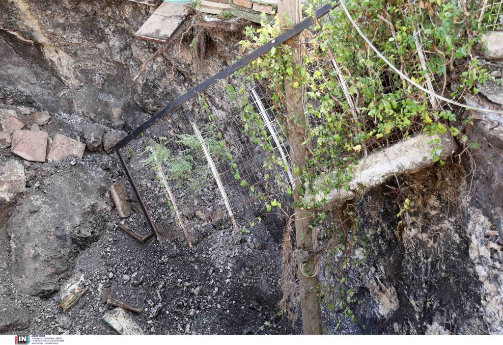 Μόλις ξημέρωσε φάνηκε η κατολίσθηση του εδάφους ανάμεσα στα σπίτια.