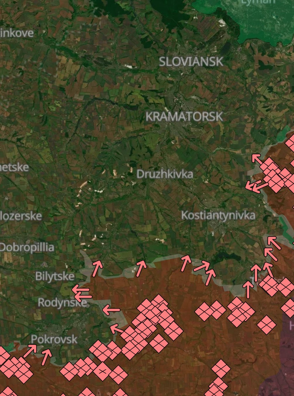 Εν τω μεταξύ, η κύρια περιοχή πίσω από την Κονσταντίνοφκα, ο οικισμός Σλαβιάνσκ-Κραματόρσκ, δέχεται ισχυρά και μεθοδικά πυρά από τα στρατεύματά των Ρώσων. Ολόκληρη η υποδομή του ανεφοδιασμού των Ουκρανικών Ενόπλων Δυνάμεων κυριολεκτικά σαρώνεται.